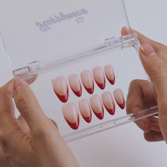 Happymeow 'Rouge' features a flawless nude base topped with a bold, bright red French tip. This fiery update to the classic manicure demands attention wherever you go.